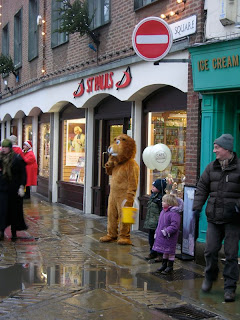 Today’s walk was wet and slushy. I learned just how not waterproof my street shoes are. My feet were soaked after 30 minutes, so we started looking for a place to buy some good waterproof shoes. At the first store we tried, the young hip sales boy tried to convince me that the cool looking, thin leather high-top shoes were water proof. I said “these are good for slush and ice?” He nodded yes. I turned them over and the soles were slick, no tread at all. I said “And the bottom is slick so it’s easier to fall on the ice?” He went looking for another salesperson. The next young sales lady passed us on to a third sales lady who suggested an Army and Navy Store around the corner. That worked out great and Robin bought me an unexpected Christmas present of comfortable, warm, dry, waterproof shoes that also look great on slushy streets, in Minsters and Cathedrals, and also in pubs and on university campuses. Brilliant!